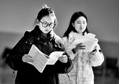 2025年全国硕士研究生招生考试日前举行,图为考生在考场外抓紧复习。卢启建摄/光明图片